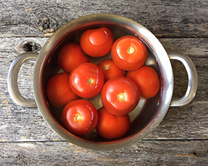 “You have to write down the recipes, exactly, Corey”, said my hubby as he sat at the counter and watched me dump what seemed like a bushel of tomatoes into the sink. “What are you doing with those”, he asked. I told him that I was going to put them into a giant, 8 quart stock pot and flash boil to remove the skins. “Then what?”, he asked. I went on to tell him that I didn’t know what was next. I had just got back from the market with more tomatoes, onions, garlic and peppers than anyone without a canning business should have.